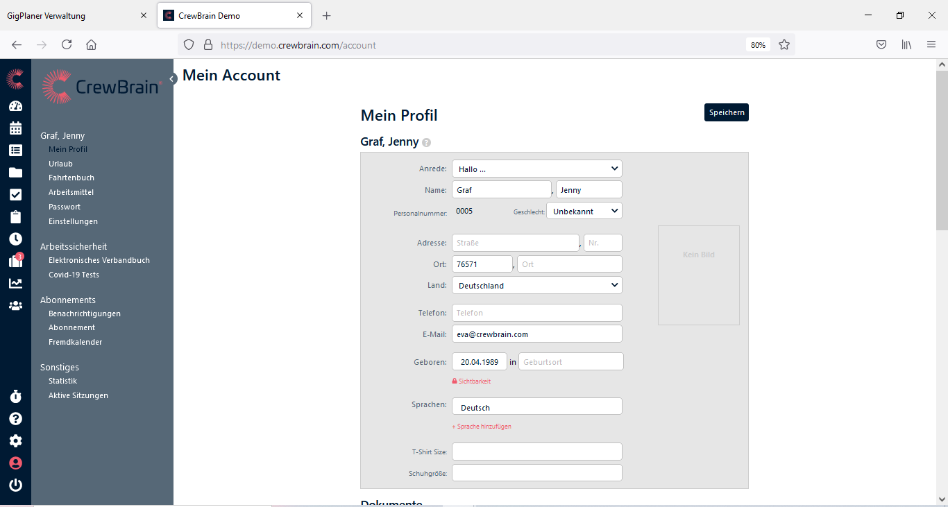 Wenn nicht bereits in den Stammdaten geschehen, kann hier jeder Mitarbeiter seine persönlichen Informationen eintragen oder ändern. Diese sind nur für berechtigte Mitarbeiter sichtbar und relevant für schnelle Absprachen. Neben den klassischen persönlichen Daten können in diesem Bereich aber auch noch weitere Daten erfasst werden - je nach Zugriffsrechten.