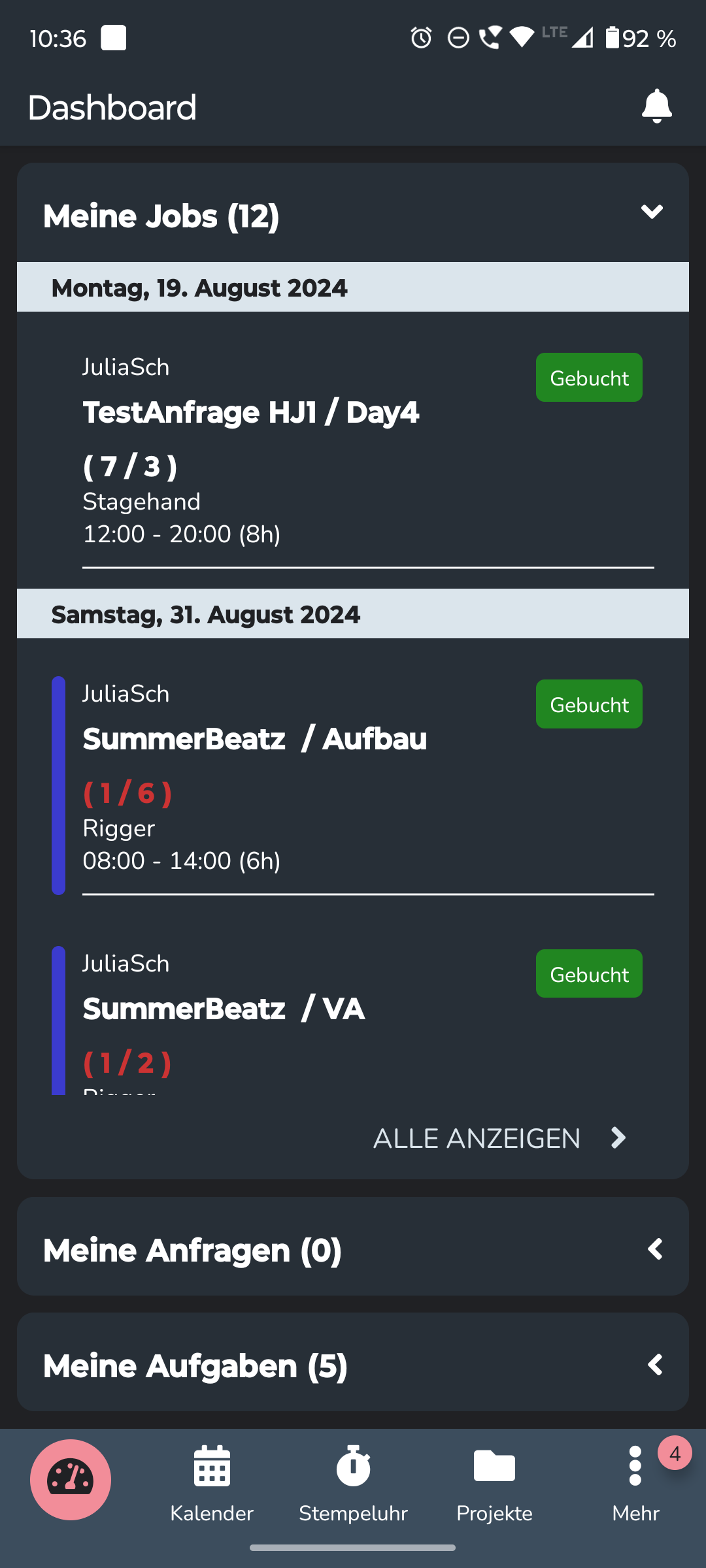 Es werden Ihnen alle Jobs ab dem aktuellen Datum angezeigt, an denen Sie beteiligt sind. Öffnen Sie sie durch anklicken.