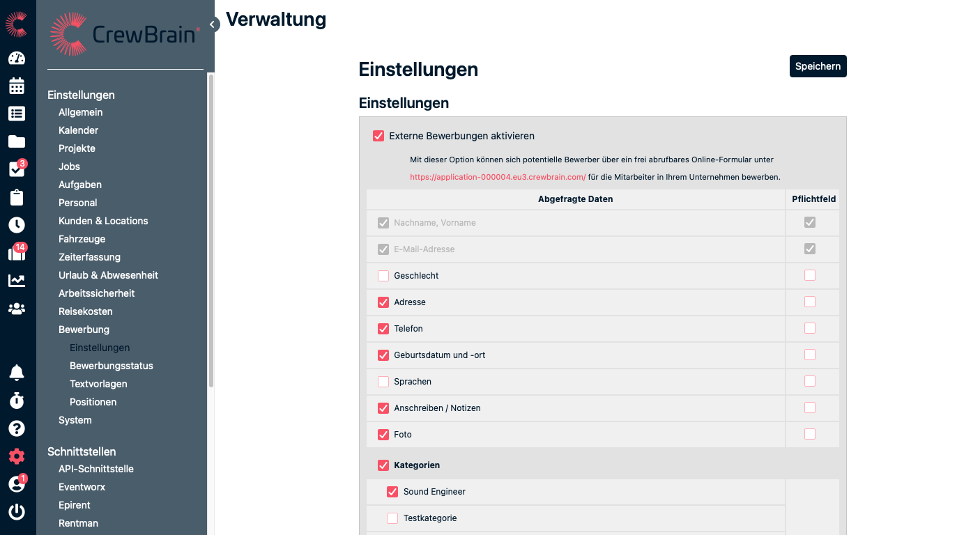 Mit dieser Option können sich potentielle Bewerber über ein frei abrufbares Online-Formular unter https://eigenedomain.crewbrain.com/application für die Mitarbeit in Ihrem Unternehmen bewerben.