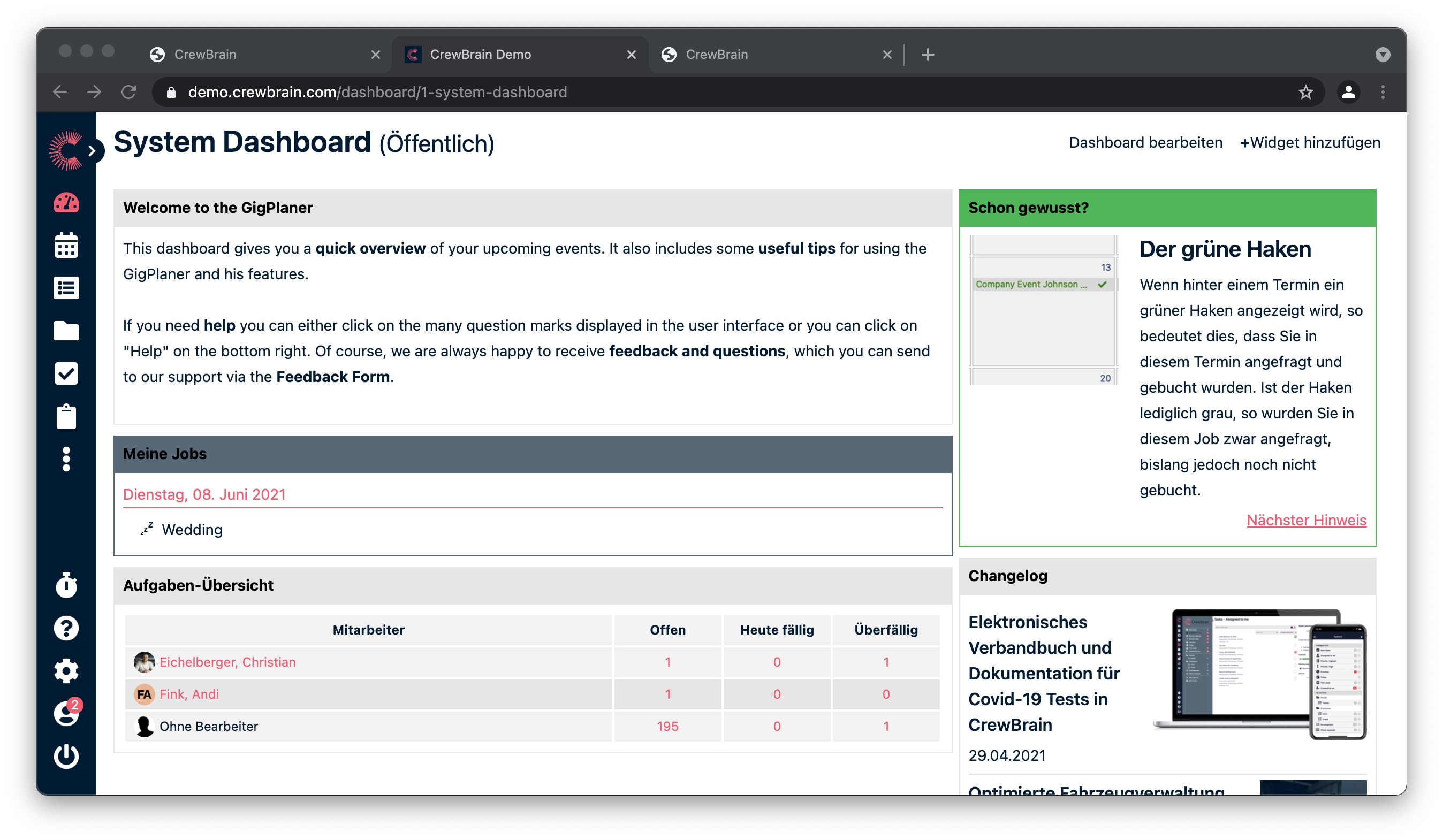 Das individuelle Dashboard kann so von jedem selbst bearbeitet werden, alle anderen nur mit den entsprechenden Zugriffsrechten.