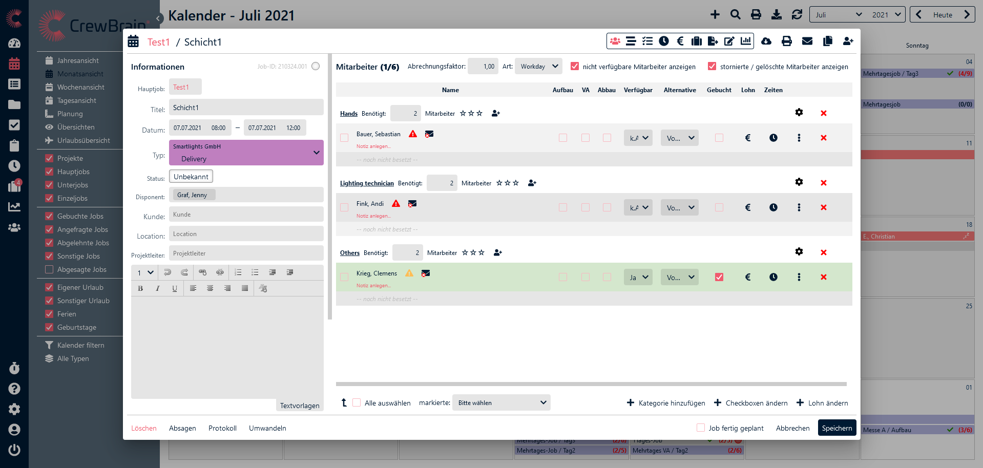 Wenn Sie einen Job - ohne Unterjobs - anlegen, ist dieser Job erstmal ein Einzeljob. Sobald Sie Unterjobs dazu anlegen, wird der Einzeljob zum Hauptjob. Wurden bereits Unterjobs angelegt, sind diese mit farblichen Streifen versehen, die jeweils auf dem Jobtypen basieren.