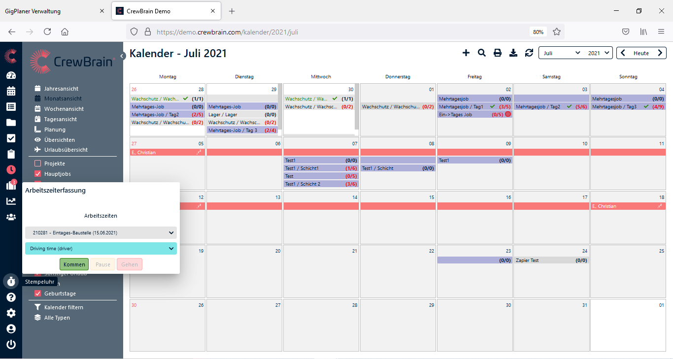 Die Funktionen für Administratoren und Disponenten, sprich Jobs und Projekte erstellen, Mitarbeiter disponiert und Stammdaten verwalten sind dort natürlich auch möglich.