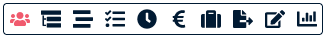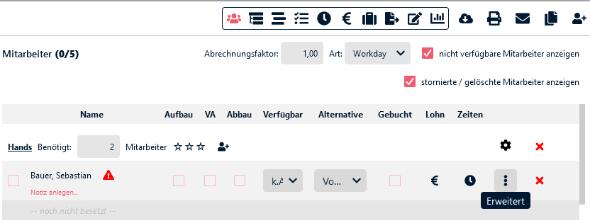 Sind die Kategorien dann mit konkreten Mitarbeitern besetzt, sehen Sie unter dem Icon "Mitarbeiter" wiederum verschiedene Icons in der Zeile des jeweiligen Mitarbeiters.