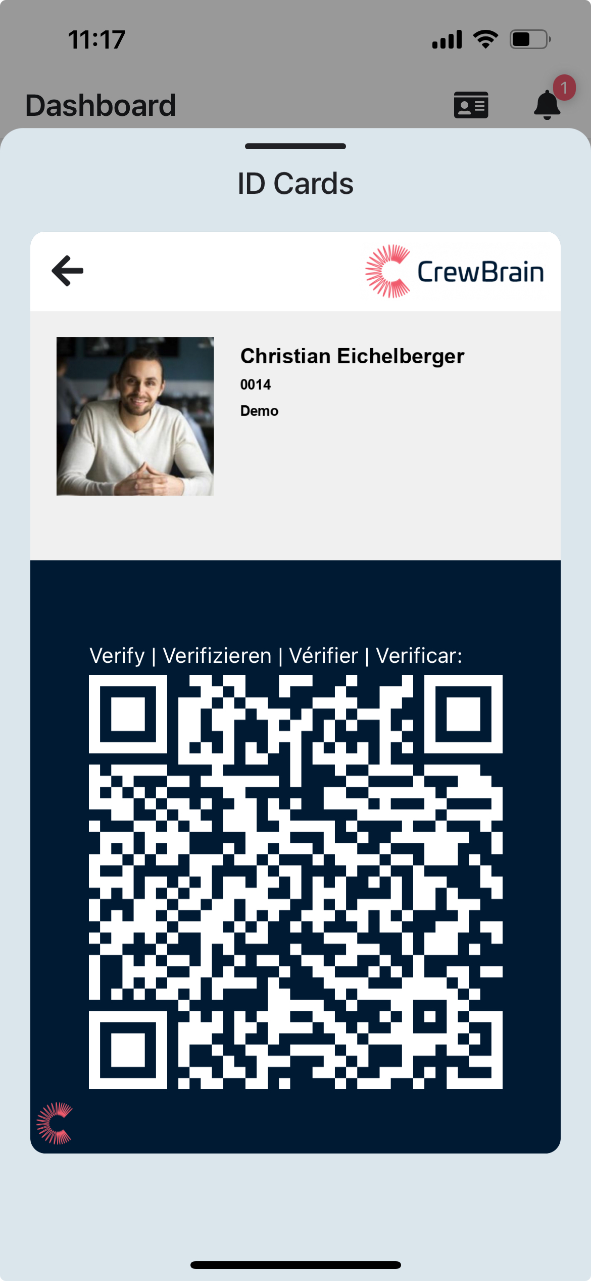 CrewBrain offers a digital employee and access ID, which is available both via the app and as printed (RFID) cards. With the help of these IDs, even persons outside of CrewBrain can verify whether an employee or freelancer is actually authorized to work for the specified company at the specified location.