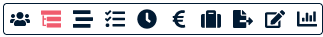 By clicking on the clock icon, you can manually record working hours. The color of the clock already indicates the status of the time recording: Black: no times recorded yet. Green: actual times recorded. Yellow: target times recorded. Red: actual times deviate significantly from target times.
